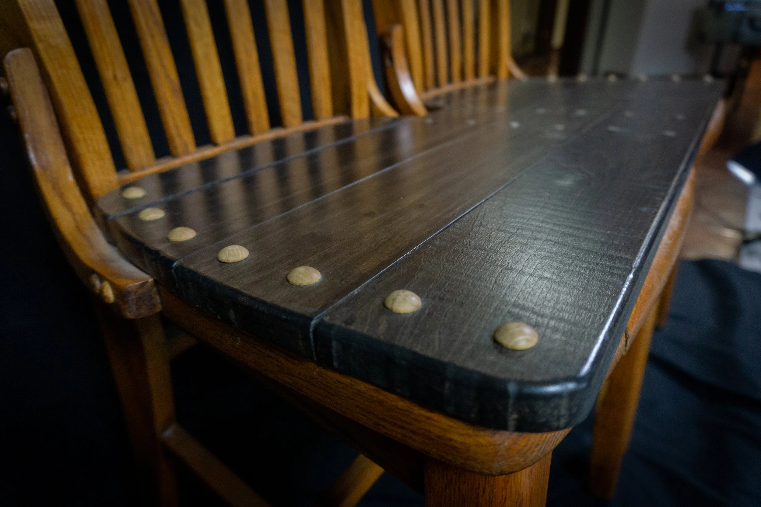 This is a converted bench from two chairs with sentimental value. It’s now a valued bench that works in our home.